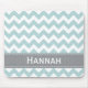 This cute and stylish modern blue and grey chevron stripe mousepad with an alternating blue and white zigzag pattern can be personalized with your name on the PRINTED contrast stitch ribbon look design. Designed by Chrissy H. Studios, LLC. All Rights Reserved.