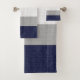 Modern minimalist blue and grey crosshatch pattern bath towel set