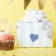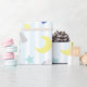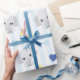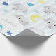 Add a cute touch to the party gift of your little boy with this adorable custom elephant pattern wrapping paper. Gift wrap has grey elephants, stars, moons, hearts, and a cloud where you can add a first name. The background is light pastel blue and white stripes.