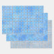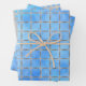Contemporary gender-neutral geometric-themed gifts and party supplies. A variety of geometric square shapes on a beautiful mottled blue background for each gift-wrapping sheet in the set of 3. The blue background can be replaced with a background of your choice to personalize and show your style. Blue and Grey Geometric Wrapping Paper Sheets
