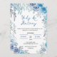 Light blue and grey wedding invitation, watercolor floral template, delicate, elegant, modern style.