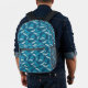 Whether you're fishing for trout or fishing for compliments you'll get the job done with this backpack. It features simple illustrations of trout fish in ivory, teal blue and navy blue set against a cool blue background.
