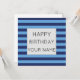 A cool light blue and light blue striped pattern and a Happy Birthday text template. Click personalize to add your name.
