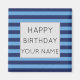 A cool light blue and light blue striped pattern and a Happy Birthday text template. Click personalize to add your name.