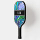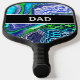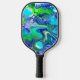 Personalized Modern pour painting marble effect blue, lime green and black abstract art pickleball paddle.