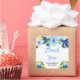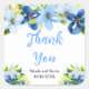 This beautiful and elegant wedding thank you sticker features watercolor baby blue and navy blue flowers with foliage on a gold geometric frame. The text combines handwritten script and serif fonts for a stylish and modern look. This is perfect for a spring or summer rustic wedding.