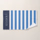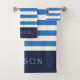 This custom made-to-order bath towel set has a preppy horizontal stripe pattern in navy, blue and white. Personalize it with your monogram name and initial or other custom text. Use the design tools to choose any background colours, edit the text fonts and colours or upload your own photos to create a unique custom set of bath towels to match any bathroom decor. The set includes a coordinating bath towel, hand towel and wash cloth or select individual towel sizes as needed.