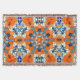 Enjoy this creative abstract symmetrical, mandala design with blue and orange colours.