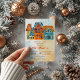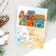 A cozy holiday gathering set against the charm of a colourful winter village. The watercolor houses, painted in warm oranges and cool blues, resemble gingerbread homes decorated with icing, lights, and festive patterns, evoking the sweetness of the season. The background’s playful splashes of colour give the design a lively, handcrafted feel, as if it were made with the same joy that goes into holiday baking and decorating. What makes this design special is its whimsical blend of festivity and warmth—it invites guests not only to a party but to step into a cheerful, storybook-like scene where community, creativity, and celebration come together.