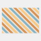 Blue and Orange Diagonal Retro Stripes Wrapping Paper Sheet