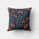 “Blue and Orange Floral Pattern Pillow” Throw Pillow