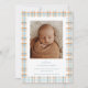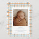 Blue and Orange Plaid Baby Announcement