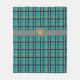 A rich turquoise base is crisscrossed by bands of deep navy blue, solid grey, and bright orange in this plaid that combines trendy colours and contrasts with a classic and cozy pattern. Customize the monogram with the appropriate initial for a personalized touch.
