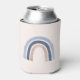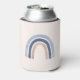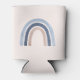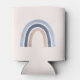 Can cooler with a cute and whimsical rainbow. Blue and peach watercolors.