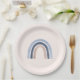 Paper plates with a cute and whimsical rainbow. Blue and peach watercolors.