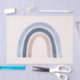 Tissue paper with a cute and whimsical rainbow. Blue and peach watercolors.