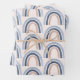 Wrapping paper sheets with a cute and whimsical rainbow. Blue and peach watercolors.