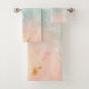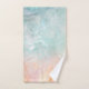 Looking for a little bit of luxury to add to your bathroom? This bath and towel set is just what you need! Made with beautiful light blue and peach fabric, this set includes a washcloth, hand towel, and bath towel. Each towel is expertly crafted with a luxurious feel, making them perfect for pampering yourself after a long day. Plus, the light colours are perfect for adding a touch of spring to your décor. Give your bathroom the update it deserves with this special set!