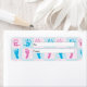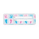 Blue and pink baby hand prints and foot prints against a lighter blue and pink square background tiled on this gift tag.