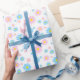 This beautiful custom wrapping paper features a light blue and pink cute daisy pattern on a white background, perfect for Mother's Day or any other occasion.