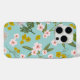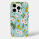 These sweet pink and chartreuse flowers on blue will add a fun pop to your spring and summer!