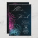A firework themed baby gender reveal party invitation. The white elegant typography text reads 'blue or pink', on a nights sky background with exploding blue and pink firecrackers. Personalize by editing the digital or printed invitation with your unique event details.