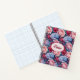 This spiral notebook features roses and peonies in soft sky blue, delicate shell pink, and dark wine red, with teal and purple foliage in the background.  Beautiful and luxurious with a vintage country look that’s still very modern.  Personalize with your name in an oval badge in complementary pink shades.