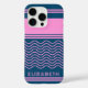 Make your phone stand out with this blue and pink wavy stripes pattern personalized iPhone 16 Pro case. Featuring a playful yet stylish design, this case adds a unique touch while protecting your device. Customize it with your name or initials for a personal flair, making it a great accessory or gift for any occasion.