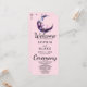 Introducing our Celestial Blush Wedding Program, a delightful blend of romance and enchantment that will add a touch of celestial magic to your wedding day. The program features a soft pink background, reminiscent of a picturesque sunset, serving as the perfect canvas for a captivating blue and purple crescent moon. Adorned with whimsical blue and purple clouds, the moon is embellished with a celestial dance of yellow, gold, and rose gold stars, creating a truly mesmerizing and otherworldly atmosphere.