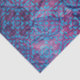 Introducing our new tissue paper design, featuring a stunning blue and purple pattern that is sure to catch your eye. The symmetrical pattern consists of a central diamond shape with a smaller diamond inside, surrounded by intricate lines and curves. The leaf-like motif on the outer edges adds a touch of elegance to the design. The colours are predominantly blue and purple, with some pink and white accents that add depth and dimension to the pattern. This tissue paper is perfect for adding a pop of colour and style to any gift or project.