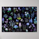 blue and purple flowers black background poster