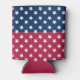 Can Cooler Koozie Sleeve printed with Blue And Red Colour Block With White Stars artwork design by TheFabricSeal at Zazzle.com #ZazzleMade