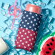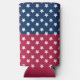 Seltzer Can Cooler Koozie Sleeve printed with Blue And Red Colour Block With White Stars artwork design by TheFabricSeal at Zazzle.com #ZazzleMade