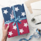 Gift Giving Package Wrap Wrapping Paper Roll available in several sizes printed with Blue And Red Colour Block With White Stars artwork design by TheFabricSeal at Zazzle.com #ZazzleMade