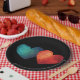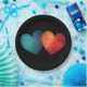 Modern hitech blue and red hearts pair, romantic 3d hearts. Heart design in black background.