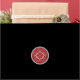 A blue and red Christmas postal style sticker for gifts. The design says 'Christmas delivery' and 'North Pole' around the border in white with a compass design on a red background in the middle. The sticker is designed to look like a postmark or a seal from the North Pole. This would be perfect to decorate Christmas presents or to seal the envelopes on your Christmas cards.