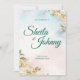Blue and Salmon Pastel Elegance Wedding Invitation