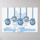 This pretty design called Blue and Silver Glitter Ornaments, has a bright white background with silver diagonal stripes. Hanging from light blue ribbons are five ornaments in blue and silver and have a glitter look. What a wonderful way to decorate for the holidays!
