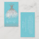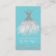 Elegant dress seamstress business card, with graphics of a white and silver glitter dress, against a robin egg blue background, with silver glitter looking accents. Personalize the text to suit your business needs. A lovely stand out card for your tailoring business.