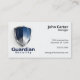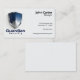 A blue and silver shield is the logo for a security company on this business card. It can be replaced with your own logo. Very sharp and professional.