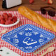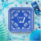 Blue and white bandana handkerchief pattern with a personal monogram.