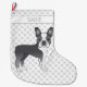Blue And White Boston Terrier Cartoon Dog & Name Large Christmas Stocking