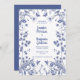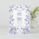 Our gentle monochrome blue and white wedding invitation in classic blue features floral, fauna, birds and butterflies. There is a mixture of sophisticated, modern typography, and flowing script calligraphy. Perfect for a garden or indoor event. This is a lovely invitation for weddings, birthdays and other events.