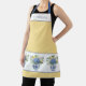 This kitchen hostess apron features beautiful blue and white chinoiserie vases with blue and white hydrangea flowers and lemons and a matching background of blue and yellow. Personalize with your choice of name or special text. Fun for personalized hostess gifts or back to school.
