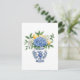 This note card features a beautiful blue and white chinoiserie vase with blue and white hydrangea flowers and lemons. Personalize with your choice of name or special text on the back.