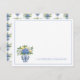 This note card features a beautiful blue and white chinoiserie vase with blue and white hydrangea flowers and lemons. Personalize with your choice of name or special text.