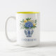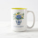 This ceramic coffee mug features beautiful blue and white chinoiserie vases with blue and white hydrangea flowers and lemons. Personalize with your choice of name or special text on each side. Fun for personalized gift bags and party favours.