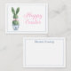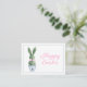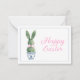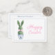 This Easter tiny note card features a cute bunny rabbit green topiary with pink bow in a blue and white chinoiserie flowerpot. Personalize the holiday messages on the front and name on the back with your choice of special text.