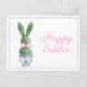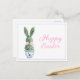 This Easter postcard features a cute bunny rabbit green topiary with pink bow in a blue and white chinoiserie flowerpot. Personalize the holiday message with your choice of special text.