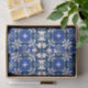 Elegant tissue paper design featuring a seamless damask pattern in blue and white.